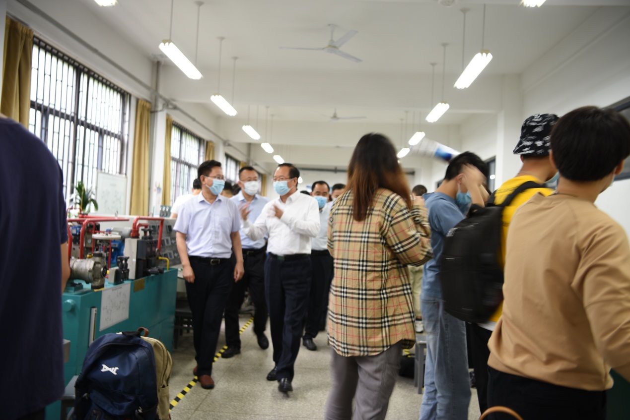 点击:6月10日,学校党委书记罗公利、副校长曾庆田到成人卡通 调研考察学生复学复课情况。学校党委办公室主任徐方全、教务处处长乔卫国、实验室与设备管理处处长李春晖等一同调研考察。