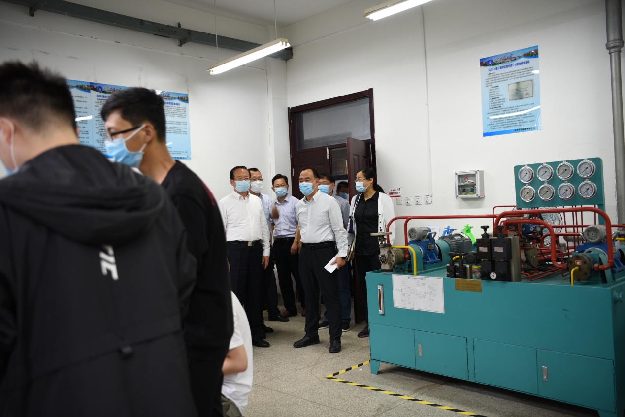罗书记详细询问了学院防疫总体工作、学生返校、实验室开课等有关情况,并对部分实验室进行了实地检查。罗书记对学院防疫部署、线下教学等工作表示满意,要求大家一定要切实提高政治站位,构建疫情防控工作链条责任体系,落实科学防控措施,形成常态化疫情防控条件下的教育教学新模式,确保每一名师生员工安全健康和复学复课工作平稳有序进行。他要求学院上下要凝心聚力,团结一致,抢抓发展机遇,谋求快速发展。