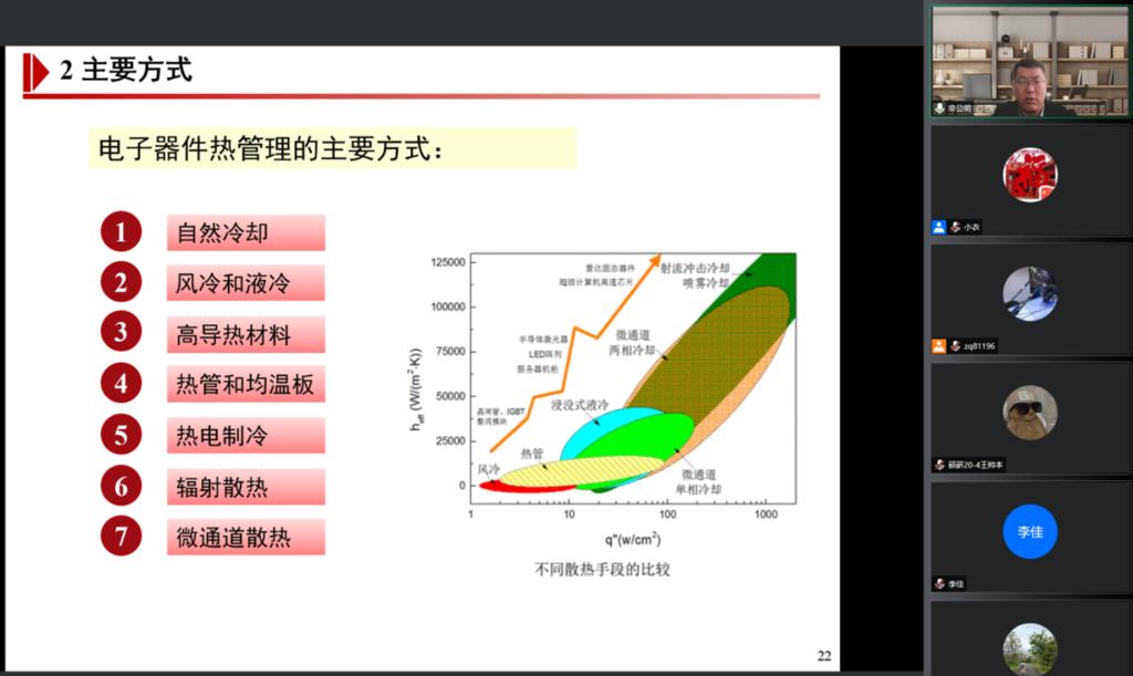 点击:2022年5月13日,山东大学能源与动力工程学院党委书记辛公明教授,应邀在线为成人卡通 师生作题为“电子器件热管理技术”的学术报告。会议由院长张强主持,成人卡通 、能源学院、材料学院等200余名师生参加了报告会。