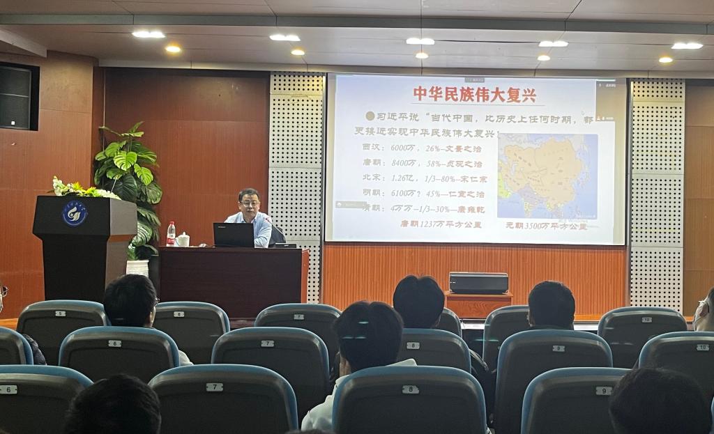 秦晓钟以时间为轴线,讲述了从鸦片战争开始到共产党成立的近代以来一系列重大历史事件,为大家阐释了“为什么只有中国共产党才能带领中国人民实现中华民族的伟大复兴?”这个历史命题。他强调,同学们要具有“为天地立心,为生民立命,为往圣继绝学,为万世开太平”的家国情怀与历史责任感,时刻以“江山代有人才出,各领风骚数百年”勉励自己。