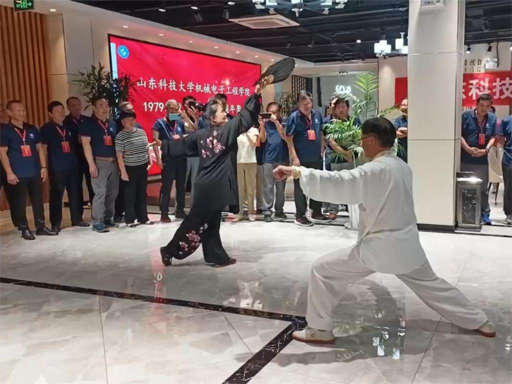 下午,校友们依次参观了学校东门、校史陈列馆、图书馆、成人卡通 实验室和小平科技创新团队工作室,切身体验学校四十年来的蓬勃发展。晚上,学院在校友之家举办联欢晚会,太极拳、舞剑、歌唱……多才多艺的校友们仿佛回到了青葱岁月,大家一起谈笑风生。