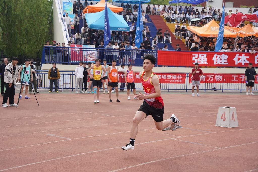 在田径赛场上,机电运动健儿们绽放着激情与力量,升腾着希望与梦想。蓝天白云之下,健儿们奋力展现着独属机电的风貌。每一次冲刺,都是在努力突破自己;每一次跳跃,都是在努力超越自己;每一次呐喊,都是在努力成就自己……百米赛跑,他们似离弦之箭突出重围;跨栏比赛,他们奋力拼搏,用精湛的跨栏技术领跑全场;百米接力,他们每一个人都如同脱缰的野马,穿梭于绿茵场上;跳远比赛,他们蓄力奔跑,腾空而起,在沙坑中留下自己的痕迹;跳高比赛,他们助跑、起跳,一套套动作行云流水,赏心悦目;铅球比赛,他们奋力抛出,看着铁球飞向远方。看台上,一声声嘹亮的“机电加油”响彻云霄,师生们奋力呼喊,喊出了勇夺第一的豪迈风姿,为运动健儿们加油,为机电加油。