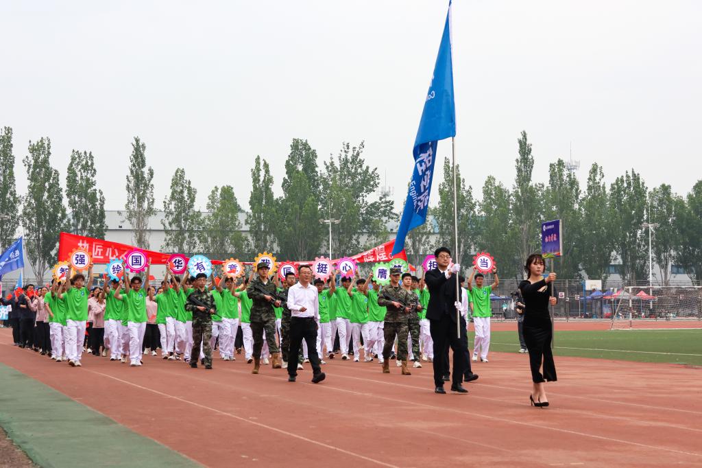 在5月14日的开幕式盛典中,成人卡通 方队以昂扬姿态惊艳亮相。200余名师生身着统一服装,踏着《运动员进行曲》的铿锵节拍,以整齐划一的步伐通过主席台。方阵成员高举齿轮状手持板,随音乐节奏变换出“匠心筑梦,智绘华章; 强国有我,挺膺担当”字样,自信的笑容与矫健的身姿彰显出学院锐意进取的精神风貌。