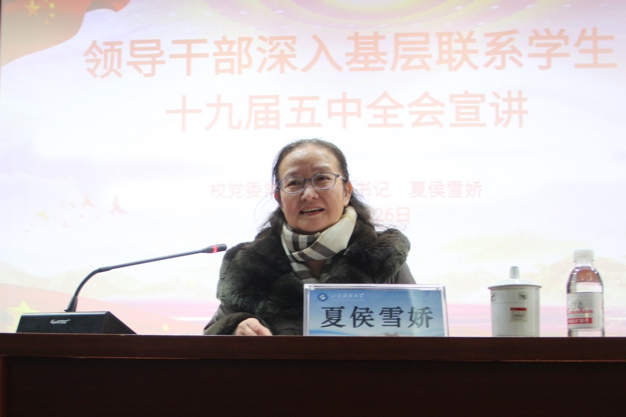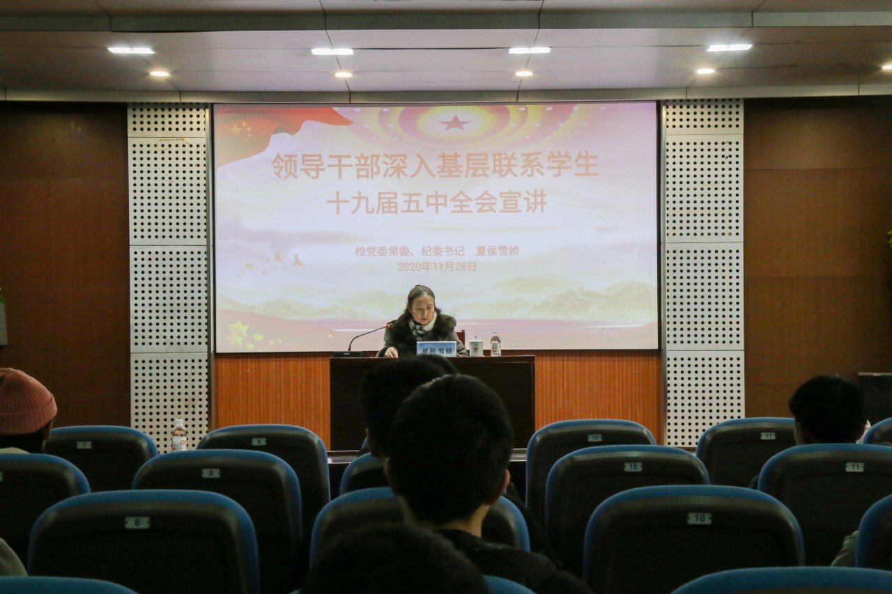 点击:为深入贯彻党的十九届五中全会精神,落实学校领导干部深入基层联系学生工作要求,11月26日下午,校党委常委、纪委书记夏侯雪娇在学院报告厅向机械设计制造及其自动化专业2019-2班学生宣讲党的十九届五中全会精神。成人卡通 党委书记韩宝坤,党委副书记、副院长陈猛出席,机械设计制造及其自动化专业2019-2班全体学生参加。 夏侯雪娇紧扣党的十九届五中全会主题,为同学们详细讲解了《中国共产党第十九届中央委员会第五次全体会议公报》和习近平关于《中共中央关于制定国民经济和社会发展第十四个五年规划和二〇三五年远景目标的建议》等重要文件,对党的十九届五中全会精神进行了深入解读。围绕党和国家事业取得的历史性成就和改革发展大势,她介绍了我国近几年来在国家发展、社会治理等方面取得的巨大成就,2035年远景目标和“十四五”时期我国发展的指导方向、主要目标、重点任务,引发同学们的强烈共鸣。 夏侯雪娇勉励同学们,当今世界正经历百年未有之大变局,作为千禧之年出生的新时代青年,要做变局中的引领者,而不是适应者,希望同学们时刻牢记总书记的嘱托,胸怀报效祖国的抱负,重视培养对知识的建构,为跻身创新型国家前列、实现科技强国贡献自己的青春力量。 本次领导干部深入基层联系学生工作,体现了学校对青年学生思想动态的关注,引领同学们深入学习党的最新政策方针,激发了广大学生的爱国热情,引导同学们学习领会党的十九届五中全会精神,提高自身修养,与时代同呼吸,与祖国共命运。(通讯员:祝月盈 林范运 摄影:孙建华)