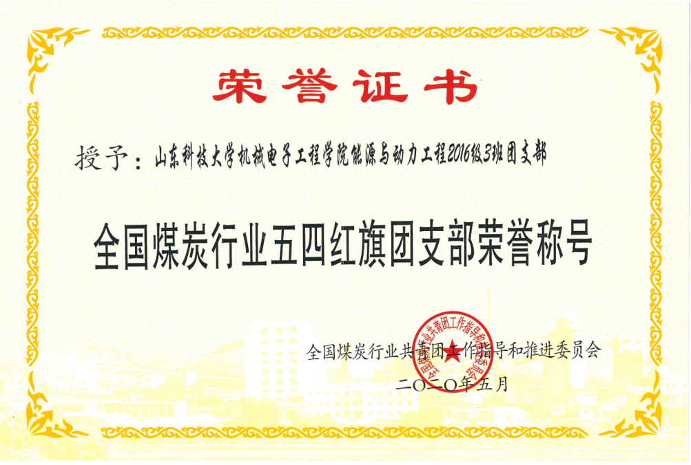 日前,全国煤炭行业共青团工作指导和推进委员会对2019年度全国煤炭行业优秀团委(团支部)、团干部和共青团员进行了表彰,成人卡通 成人卡通 能源与动力工程2016级3班团支部荣获“全国煤炭行业五四红旗团支部”称号。