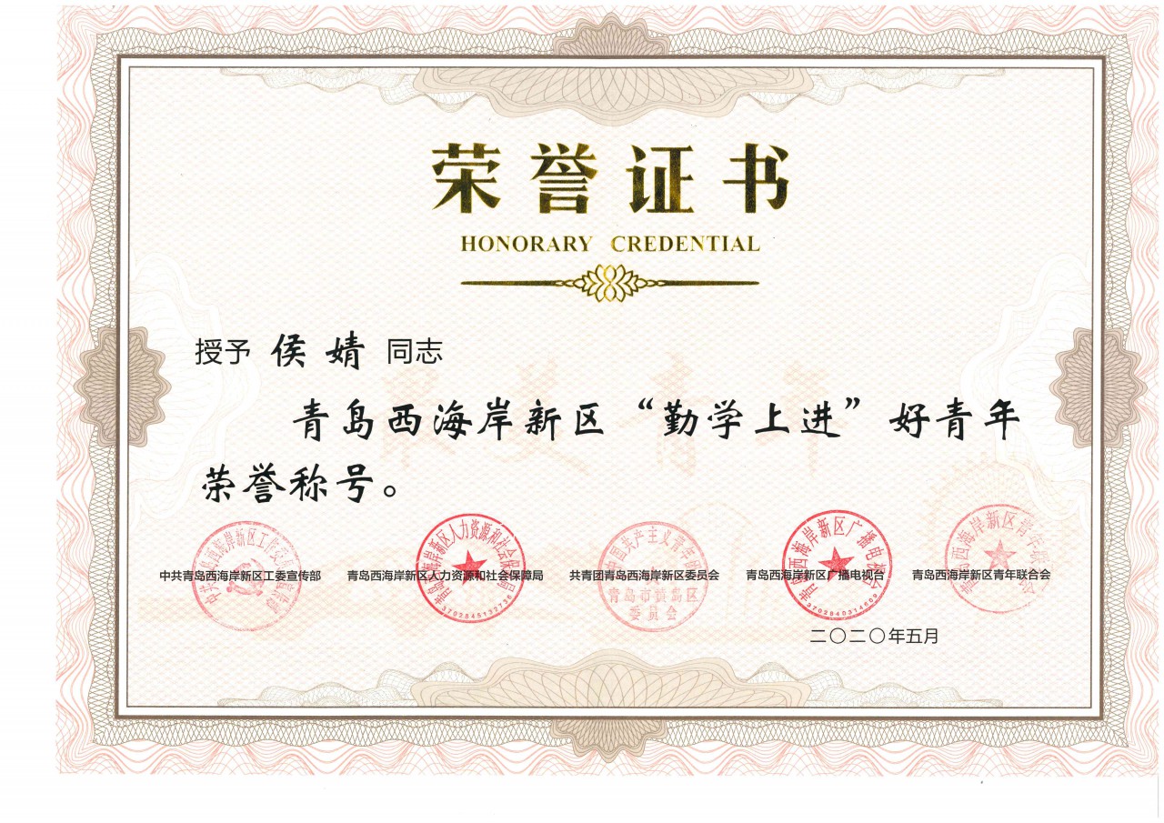 点击:日前,由工委宣传部、区人力资源和社会保障局、区广播电视台、团区委、区青年联合会共同开展的“新区最美青年”评选活动结果揭晓,成人卡通 学生侯婧荣获青岛西海岸新区“勤学上进”好青年荣誉称号。