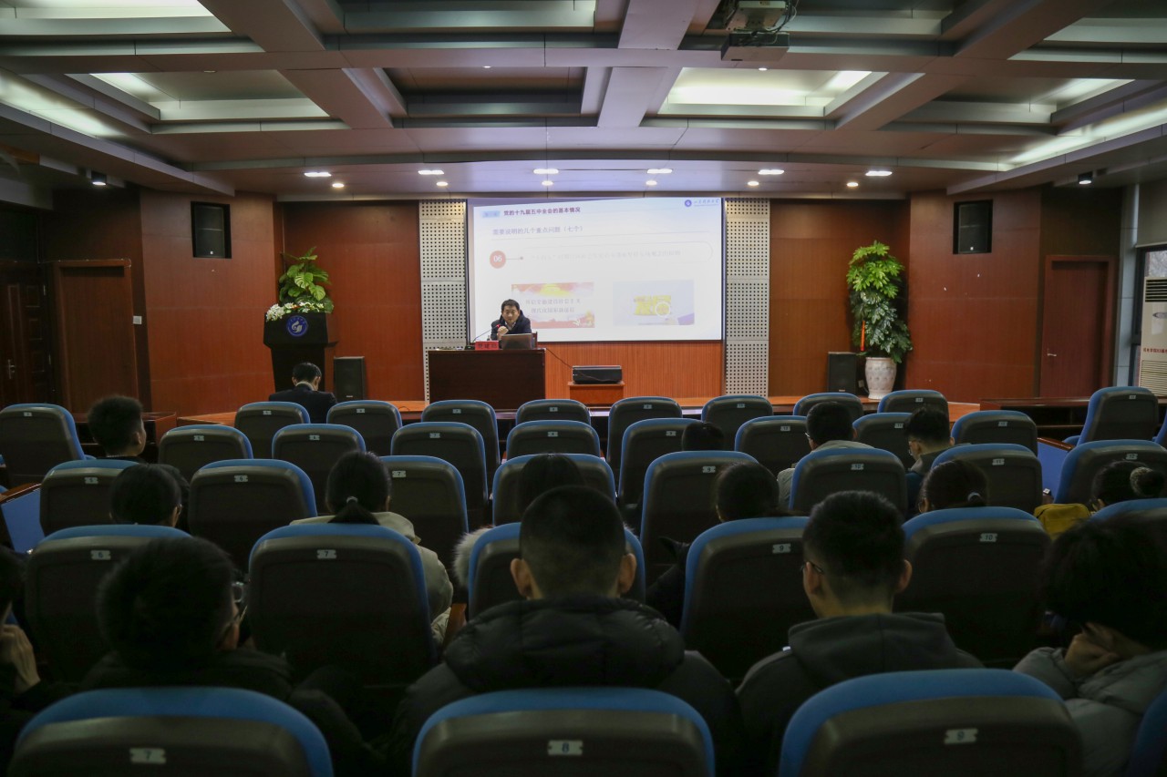 点击:为深入学习贯彻党的十九届五中全会精神,12月11日下午,教务处副处长樊建聪在学院报告厅为成人卡通 2019级联系班级学生宣讲党的十九届五中全会精神,辅导员宋阔出席本次会议。