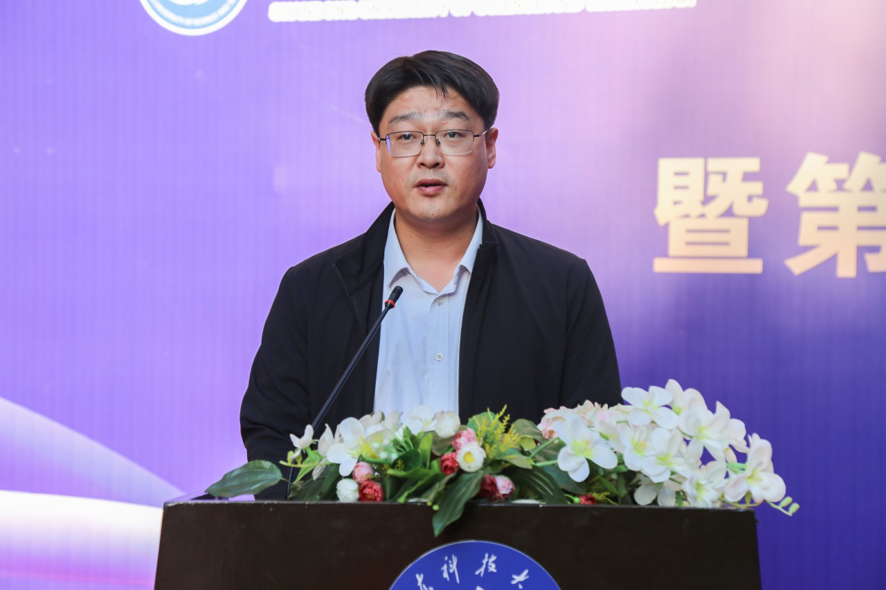 韩宝坤致开幕词,介绍了成人卡通 2021年度科创成果展和第二届“寻找合伙人”大学生科创项目双选会的开展情况。