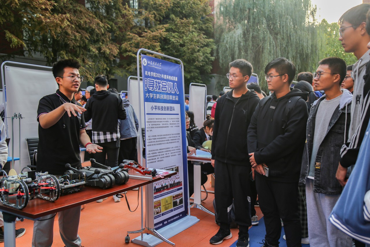 随后,科创项目双选会正式拉开序幕。与会嘉宾参观成人卡通 2021年度科技成果展,其中包括竞赛专项成果、科技创新作品和创业项目三部分,目前共征集成人卡通 师生参与度较高的18项高水平竞赛、关注度较高的41项科创作品以及创业项目。