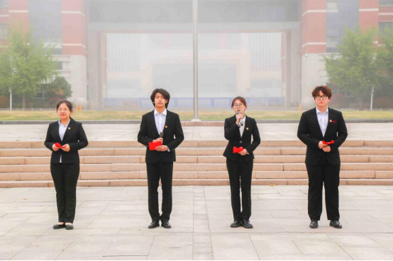 升旗仪式后,梦耀中华服务宣讲团成员在国旗下作《弘扬沂蒙精神,争做时代青年》主题宣讲。四月暖阳,宣讲员在充满生机的清晨里,声情并茂地诵读沂蒙妇女李桂芳用身躯架起“火线桥”、沂蒙母亲王换于抚养四十多名革命后代长大成人、沂蒙百万人民参加抗战为国捐躯等一个个感人鲜活的事例,诠释了军民“水乳交融、生死与共”的沂蒙精神。在场的师生肃然起敬,感受到了沂蒙人民团结奋战、攻坚克难、勇往直前的伟大力量。最后,刘丰鸣同学带领同学们重温入团誓词,铿锵有力的誓词飘荡在四月春风里,立志报国、勇担重任的豪情激荡在每位青年学生的胸膛……