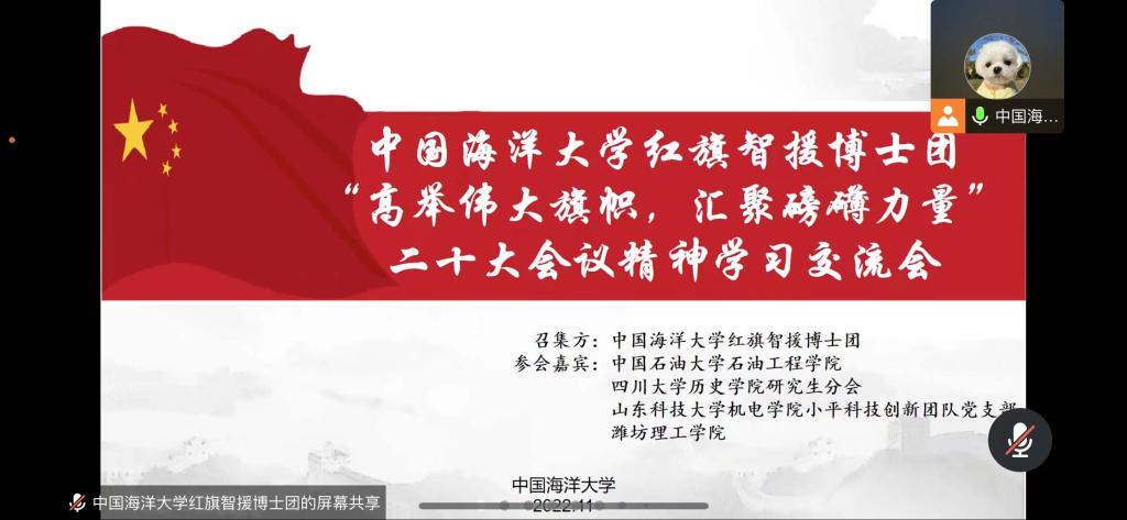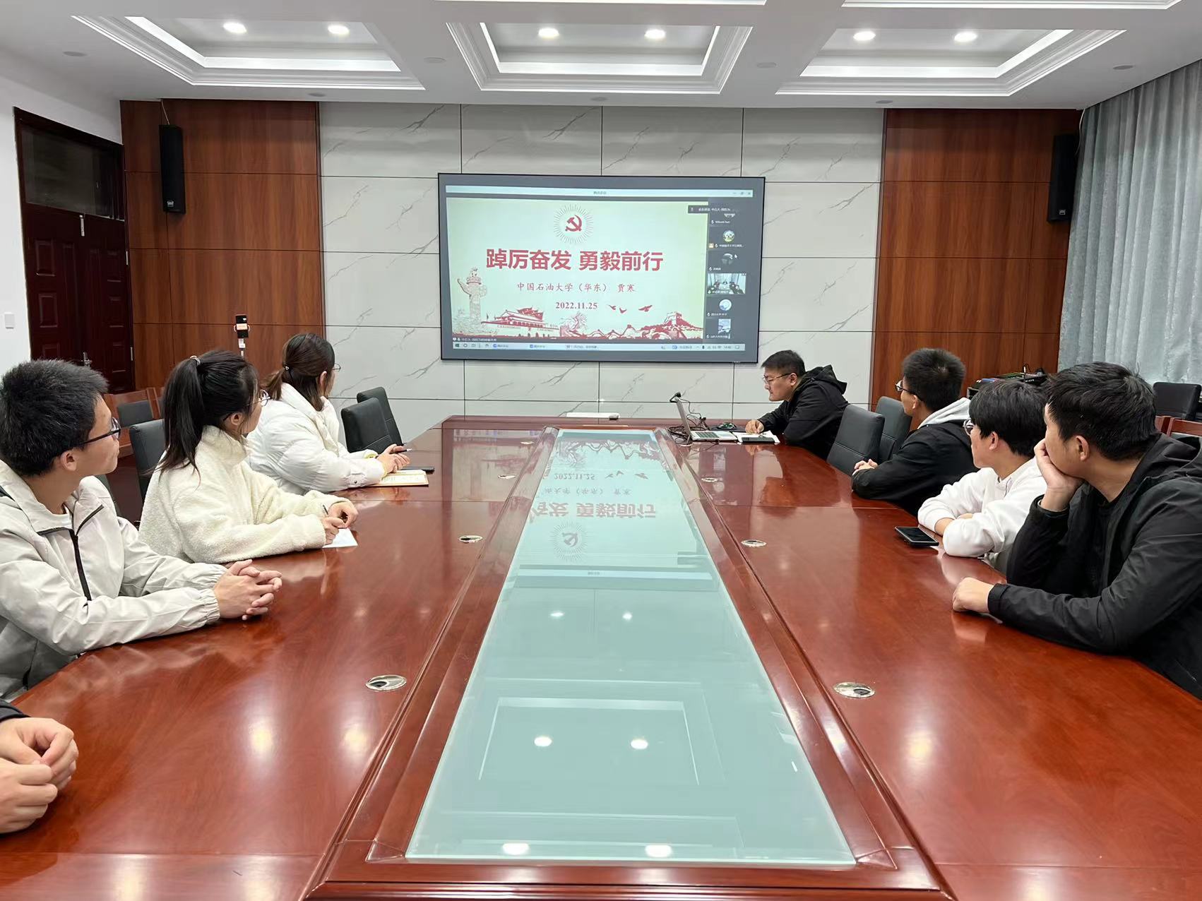 点击:为深入学习贯彻党的二十大精神,以实际行动传承红色思想、弘扬红色精神,同时加强高校之间的交流互动,持续建立学院与其他高校之间的联系,11月25日,成人卡通 小平科技创新团队党支部、能源20-2团支部部分代表与中国海洋大学、四川大学、中国石油大学和潍坊理工学院相关老师、团队负责人共同开展“高举伟大旗帜,汇聚磅礴力量”党的二十大精神学习交流会活动,中国海洋大学红旗智援博士团党委书记刘笑笑、中国石油大学(华东)石油工程学院教授贾寒、成人卡通 团委书记樊玉华出席本次活动。