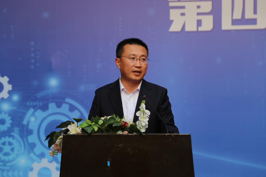马鹤致开幕词,预祝“英科医疗杯”第四届“寻找合伙人”双选会成功举办,对CR战队寄予殷切期望,并以“乐为”“敢为”“善为”为要求,鼓励同学们积极参与科技创新活动。