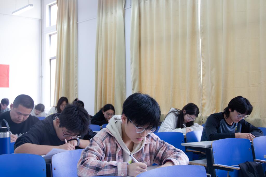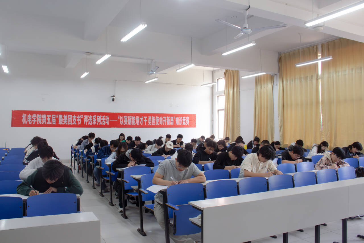 考场内弥漫着紧张而专注的气息。提前到场的团支部书记,低声交流着自学心得与经验,谈话中透露出对知识的渴望与跃跃欲试的期待。随着试卷下发,大家迅速进入状态,全神贯注地阅读试题,落笔果断有力,将平日的积累化作一行行工整的答卷,在这场知识与能力的较量中尽情展现自我。本次测试题型丰富多样,涵盖填空题、单选题、多选题、判断题、简答题。主要考察内容包括习近平总书记关于青年工作的重要思想、党的二十大和二十届二中、三中全会精神、党史团史、团内规章制度和学校共青团相关政策和规定等。