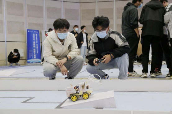 比赛共设置越野障碍赛和“科目二”仿真闯关赛,赛制为小组晋级制。越野障碍赛中,选手们遥控自行设计的机器人,从启动区出发,经过“绕杆区”完成S形绕杆任务,再通过“飞桥区”和“迷宫区”,穿越各种障碍,到达“物品搬运区”,最后操作机器人将不同形状的物块搬运到指定位置并进行堆叠。“科目二”仿真闯关赛中,选手们则模拟科目二赛道进行竞速闯关,操作机器人沿赛道依次完成倒车入库、直角转弯、侧方停车、S弯道和半坡起步项目。