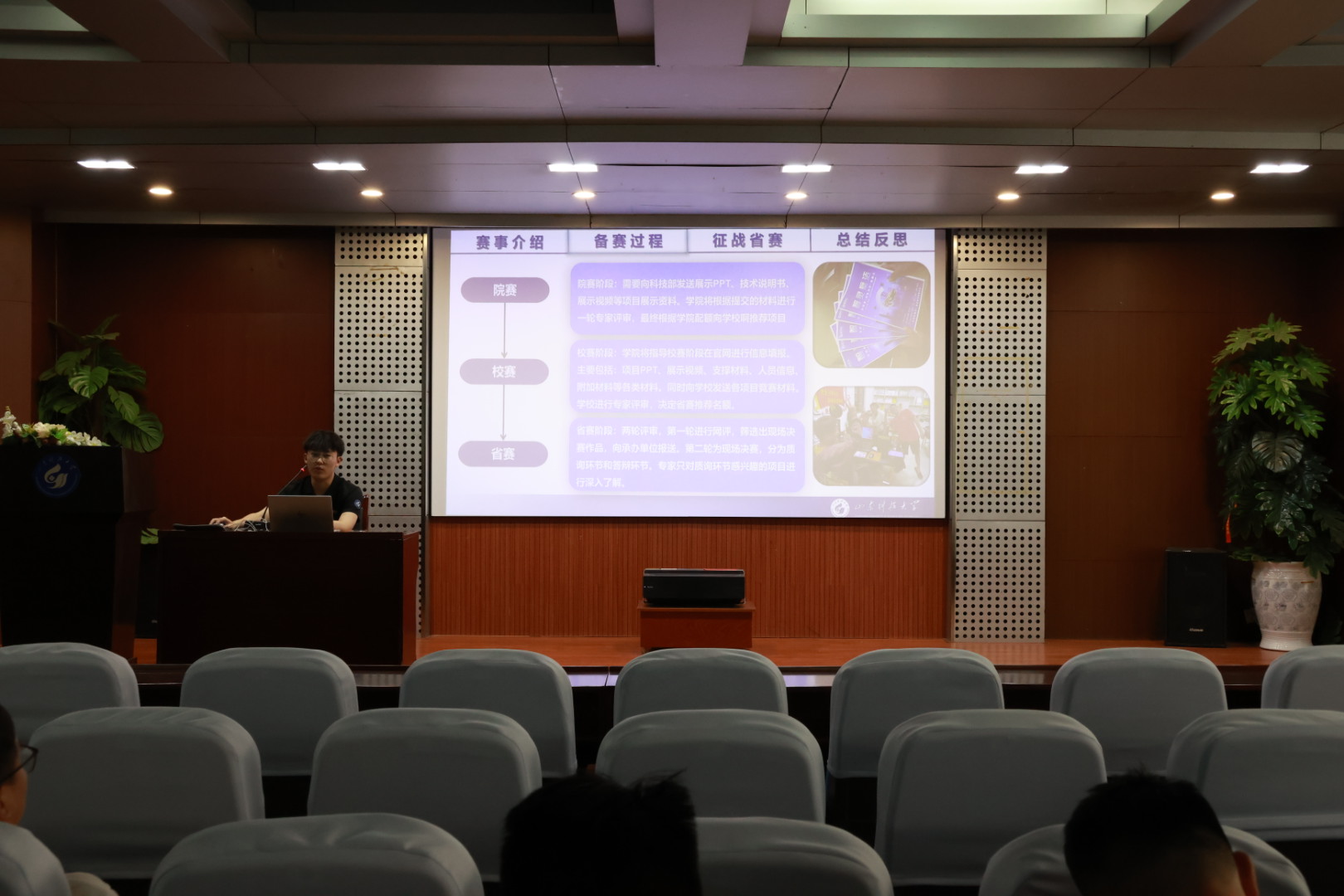 随后,陈思远结合自身经历向同学们分享了比赛经验。他表明,教师指导是项目研究的巨大助力,团队之间的合作是创出成果的有力保障。最后,陈思远鼓励同学们要直面挑战,提高自身科创素养,逐步掌握科技创新比赛所需要的各项能力。