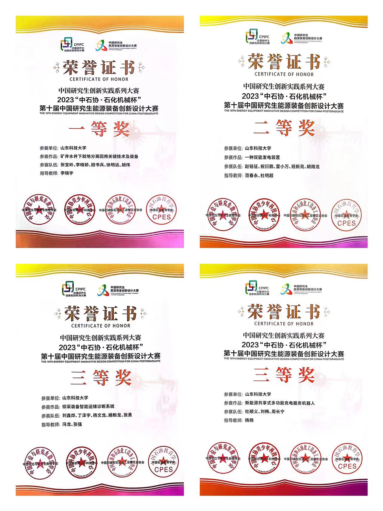 点击:9月16日至17日,“中石协·石化机械杯”第十届中国研究生能源装备创新设计大赛全国总决赛在中国石油大学(华东)落下帷幕,来自清华大学、西安交通大学等150所院校的370件作品岛城“论剑”,经过激烈角逐,成人卡通 研究生参赛作品获得一等奖1项、二等奖1项、三等奖3项,其中成人卡通 研究生获得一等奖1项、二等奖1项、三等奖2项;李晓宇老师获“优秀指导教师”,学校获“优秀组织单位”。