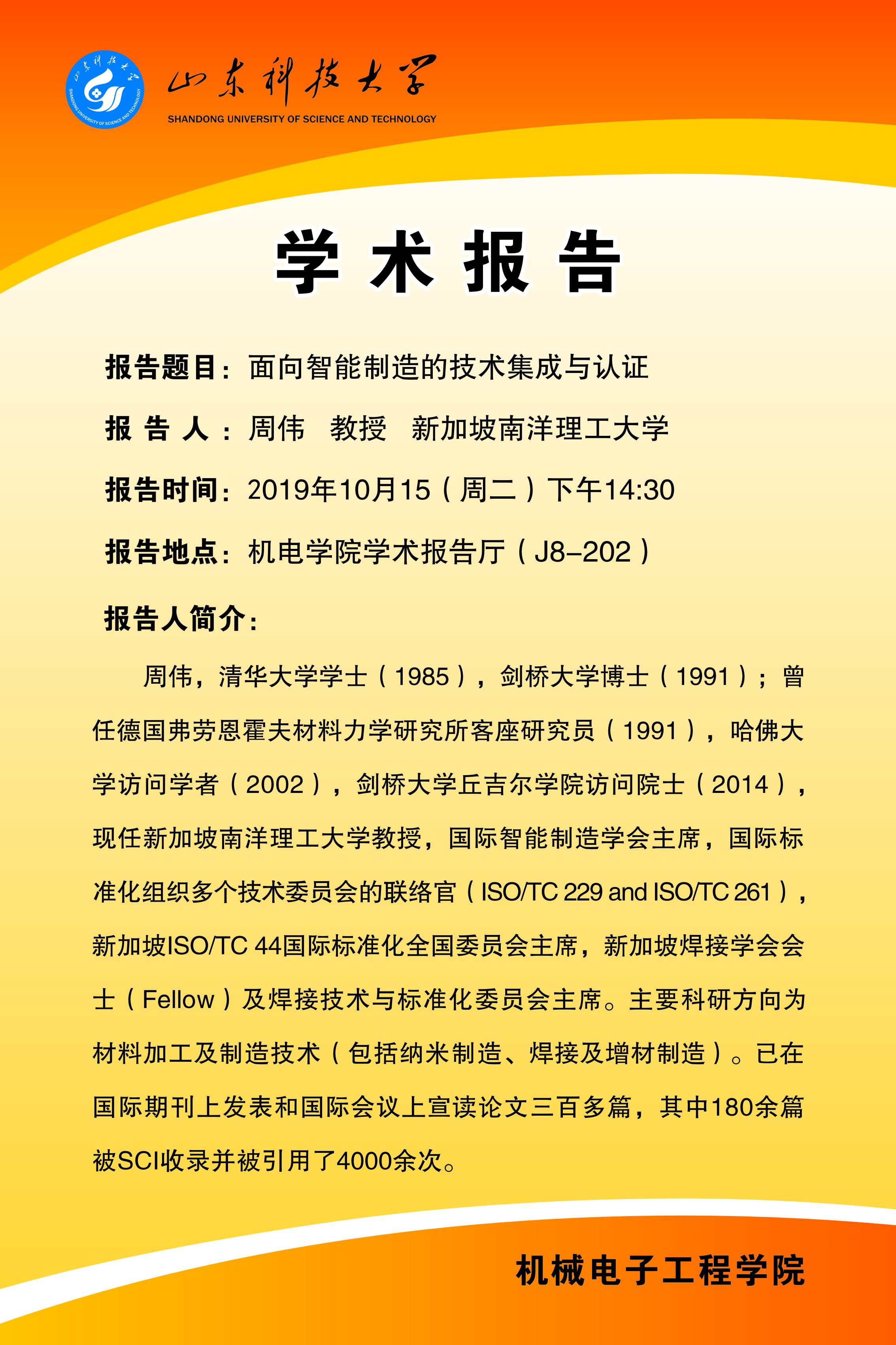 学术报告:面向智能制造的技术集成与认证