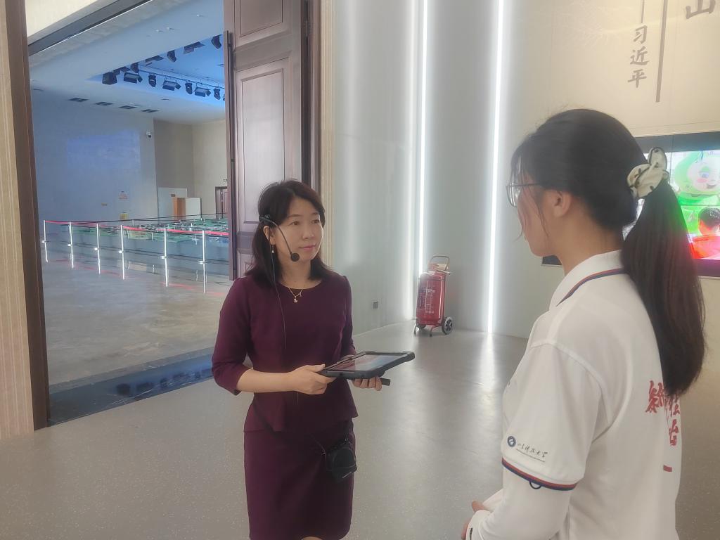 随后,队员王璐同学问到:“新时代青年应当具备怎样的素养才能在当前的就业环境下立稳脚跟呢?”讲解员回答到:“热爱和责任!干一行就要爱一行,行行出状元。时刻保持着坚持下去的责任,挑起这份担子,坚持为社会和国家做出自己的一份贡献。”最后,团队成员自发前往华八井纪念碑,瞻仰华北地区第一口发现井的傲然风貌。